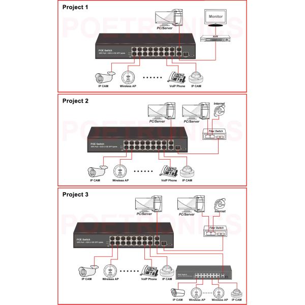 It also comes with normal free communication among each PoE ports and super remote transmission (max.250m) two different kinds of operating modes, it’s widely used to IP CCTV, wireless AP, VoIP phone and other compatible device.