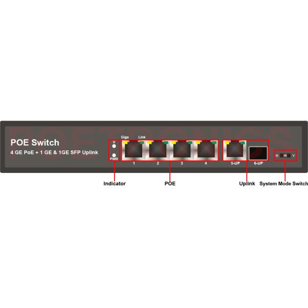 Ports : 4GE PoE + 1GE RJ45 & 1GE SFPUplink